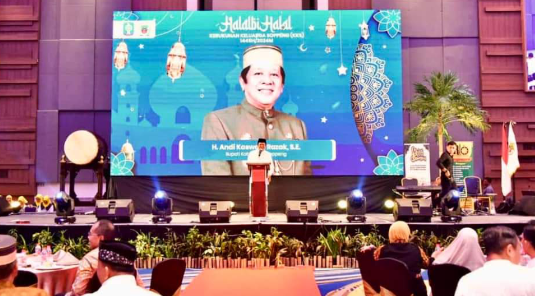 RSS SOPPENG – Bupati Soppeng H. Andi Kaswadi Razak, SE menghadiri acara Halal bi Halal Kerukunan Keluarga Soppeng (KKS) 1445 H/2024, di Hotel Fourpoint-Sheraton Makassar, Jl. Andi Djemma, Makassar, Sulawesi Selatan, Senin (15/4/2024).